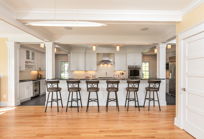 Mark and Bea wanted to modernize their 1890s farmhouse while preserving its charm and the stunning Hudson River views. Working with designs from Balzer and Tuck Architecture, we renovated the home to fix structural and design issues. The front entry was reworked to fit the style and layout better, while beams and columns were added to improve the structural integrity of the original house. We crafted custom trim and built-ins to maintain the home’s original character. We updated all bathrooms with custom showers and tile work and installed a geothermal heating and cooling system, solar panels, and spray foam insulation for efficiency. Smart technology was integrated for remote system control. Outside, with help from Young Landscapes LLC, we added retaining walls, patios, underground drainage, and a hardscape driveway to enhance outdoor use and address water concerns.